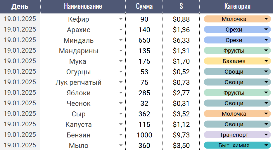 Это не вызывает сильного напряжения. Я люблю работать с данными, и в будущем мне будет интересно анализировать их и выявлять закономерности. Я стараюсь не просто фиксировать, сколько потратил, например, на продукты, а отмечать, что именно купил. Думаю, для большинства людей это не имеет большого смысла, но мне интересно исследовать такие вещи.