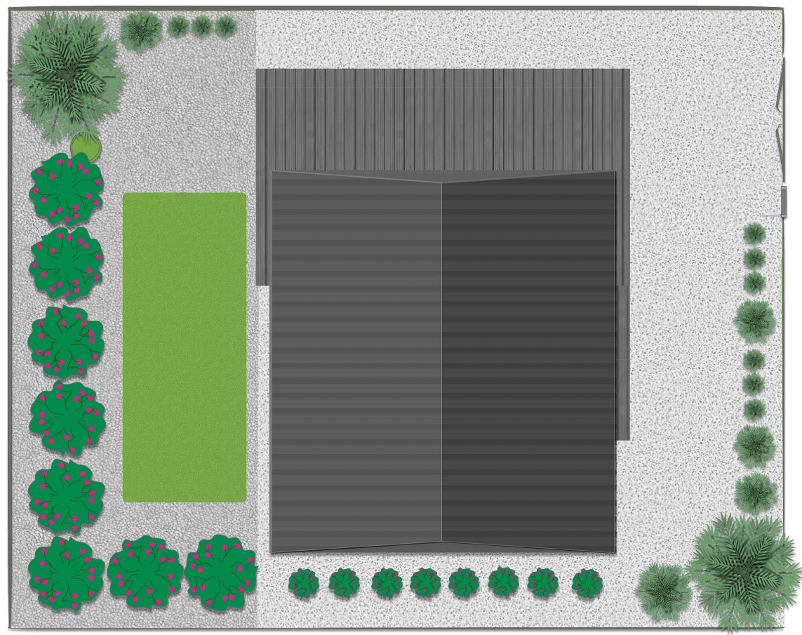 Так как участок всего 5 соток шириной 20 м, не имело смысла размещать окна по всем сторонам дома, так как вид из них все равно упирался бы в забор. Поэтому было принято решение сконцентрировать окна на восточной и западной стороне. Планировка дома: