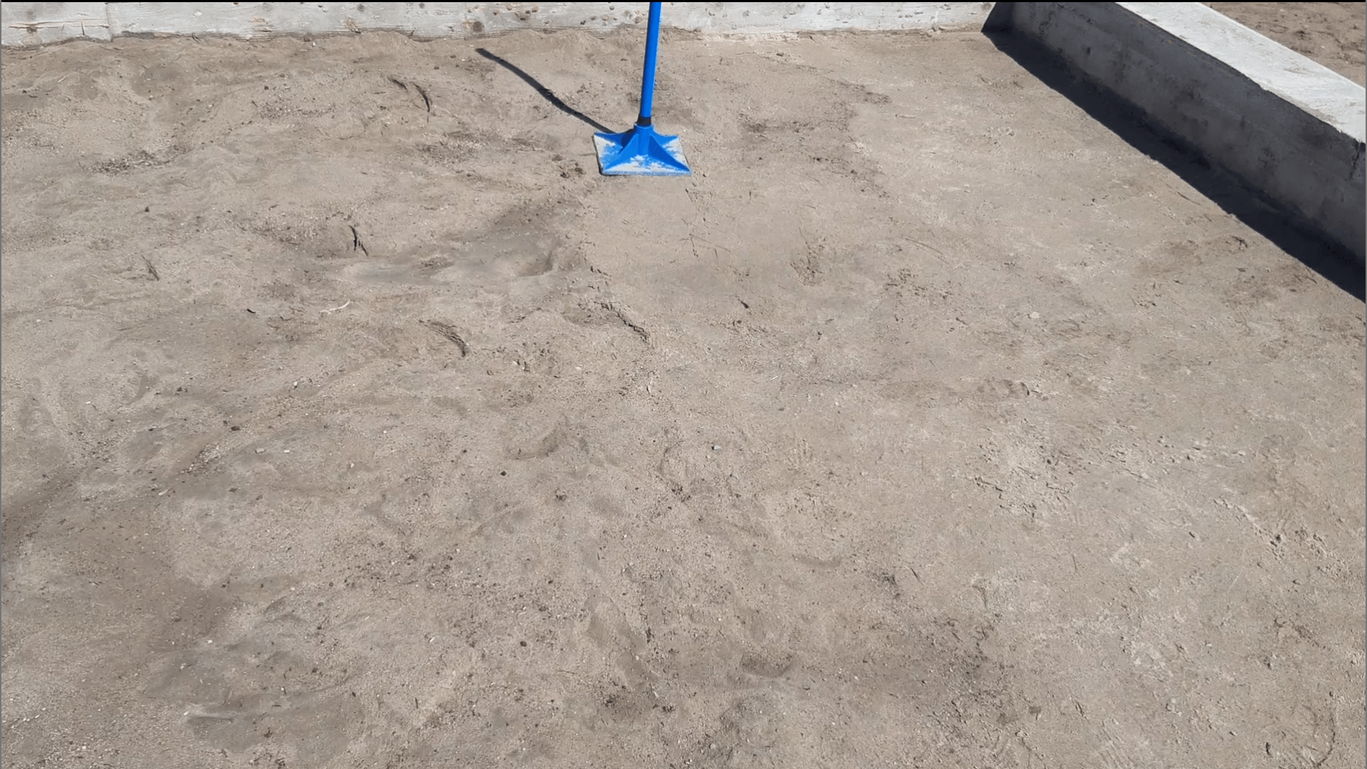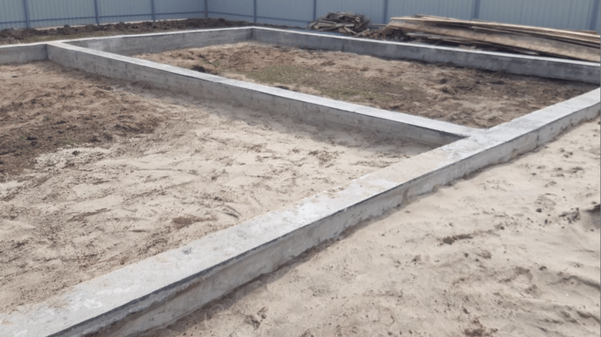 После того как я зачистил фундаментную ленту, я занялся снятием плодородного грунта внутри и засыпкой песка, используя послойную ручную трамбовку. Я хотел выровнять основание. На тот момент заливка полов не планировалась; мне нужно было просто создать довольно плотное основание, чтобы внутри было удобно ходить и заниматься работами. Однако позже я понял, что трамбовать песок было бессмысленно - он все равно распылился, и эффект прочности быстро улетучился.