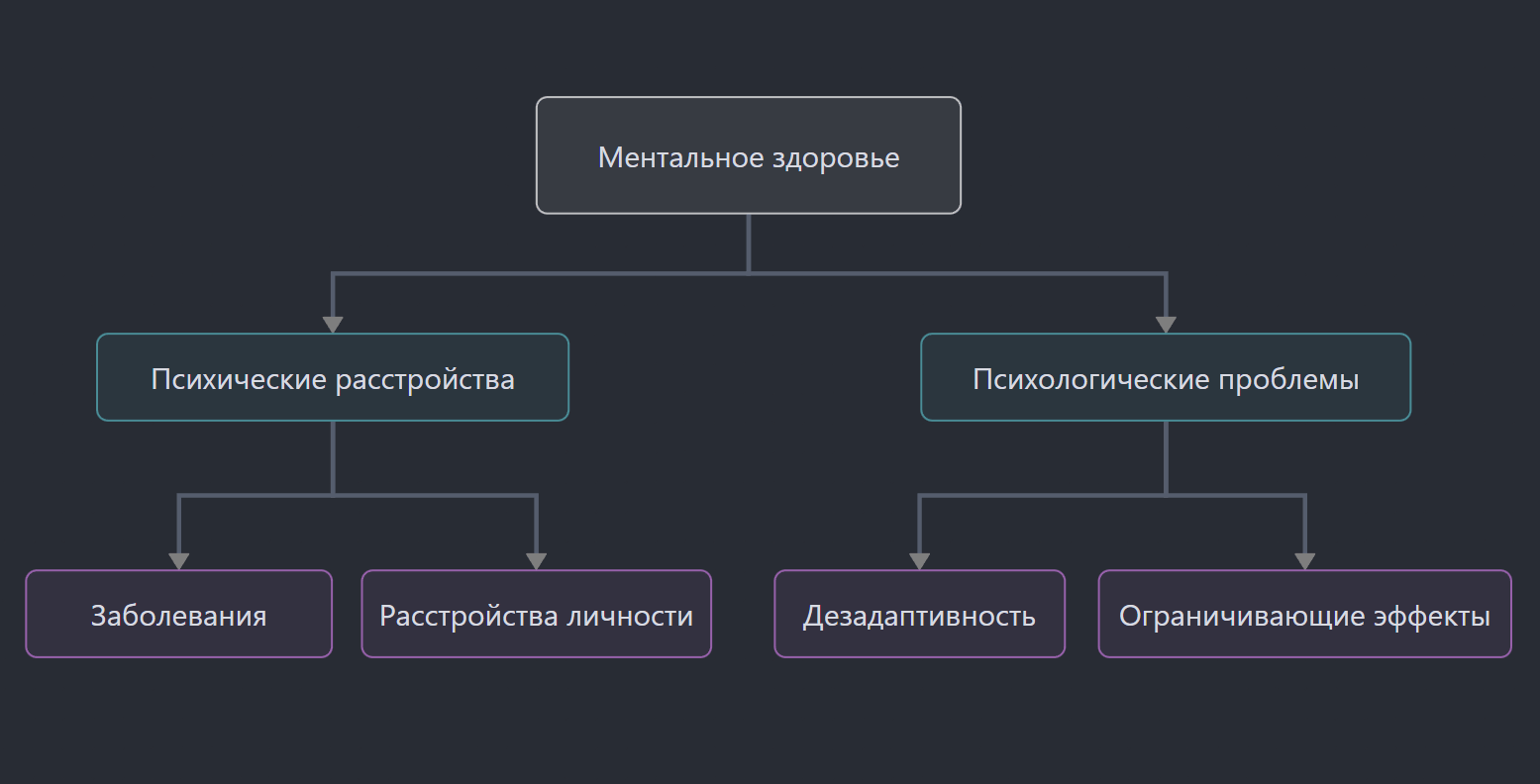Ментальное здоровье человека рассматривается в контексте: наличия психических расстройств и, если их нет, психологических проблем.